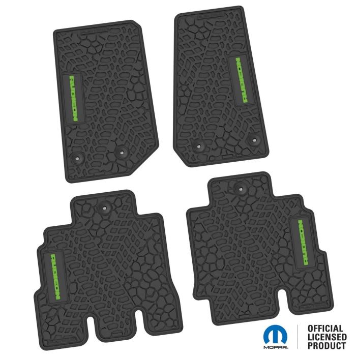 FlexTread 14-18 Jeep Wrangler JKU 4Dr Floor Mats (4pc) w/ Rubicon Logo NGTT05013: